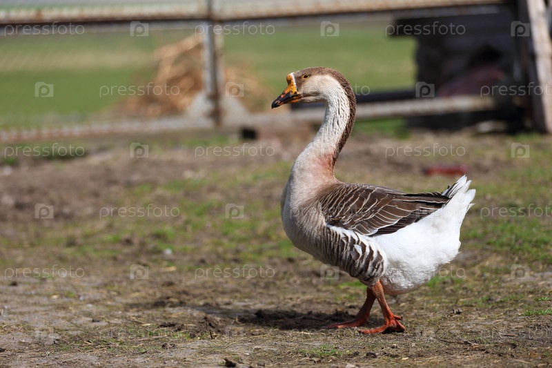 Домашний гусь прогуливается по ферме