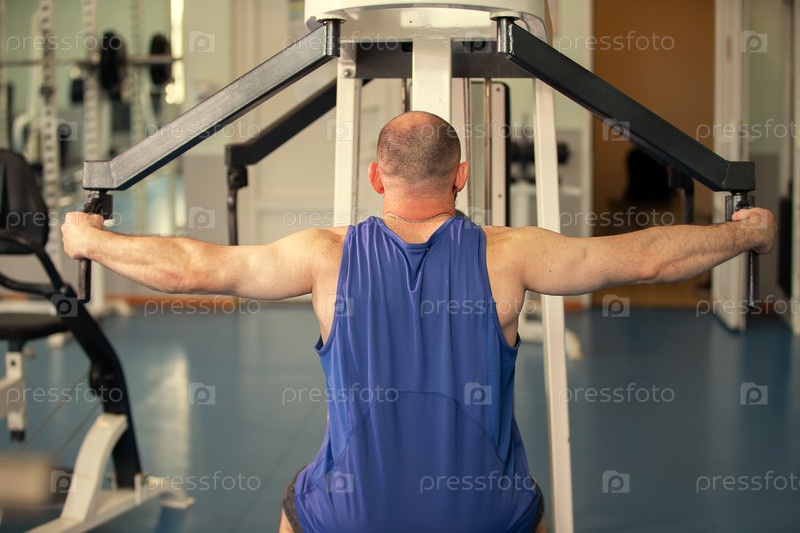 Спортсмен-мужчина тренируется на силовой машине в тренажерном зале