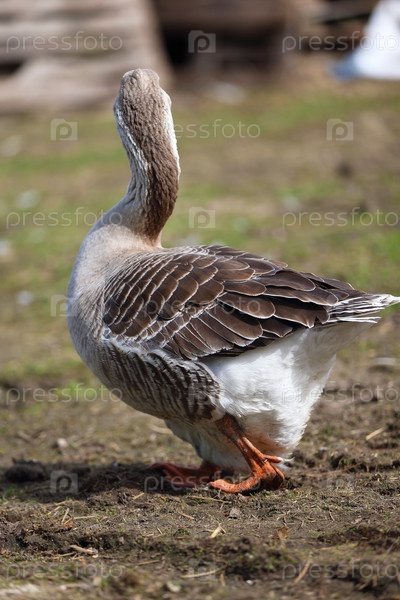 Домашний гусь прогуливается по ферме