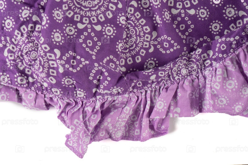 Часть свернутой винтажной ткани фиолетовая с небольшим геометрическим узором, выделенным на белом фоне