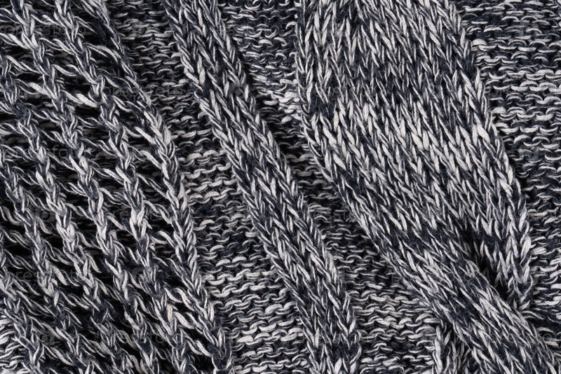 Серый фон был плотно вязан белой и черной нитью. Часть трикотажного свитера