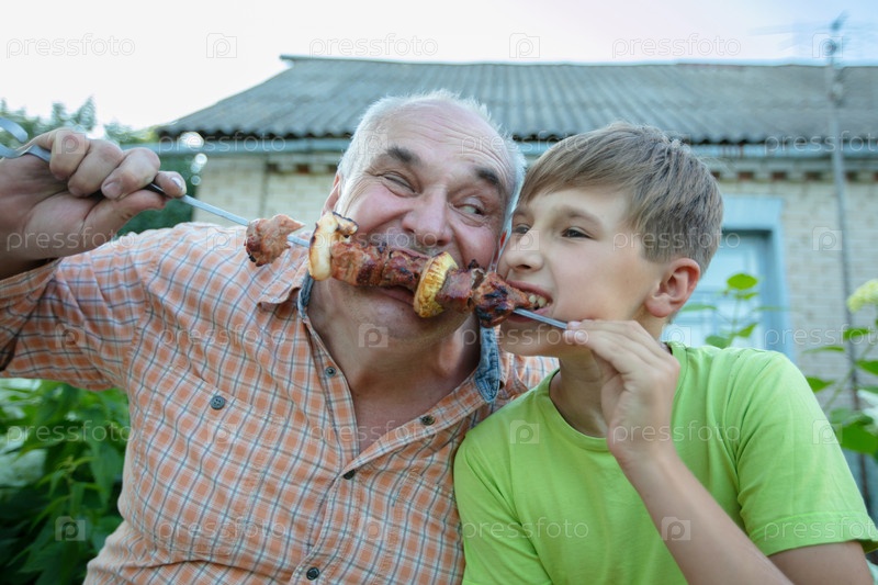 Дадушка и внук устраивают барбекю за кулисами дома