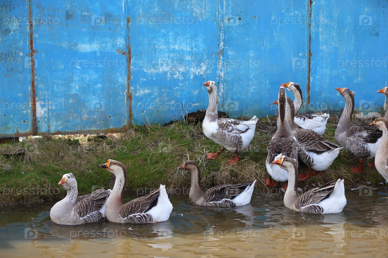 Красивые гусы в воде и на суше