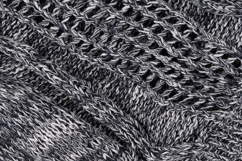 Серый фон был плотно вязан белой и черной нитью. Часть трикотажного свитера