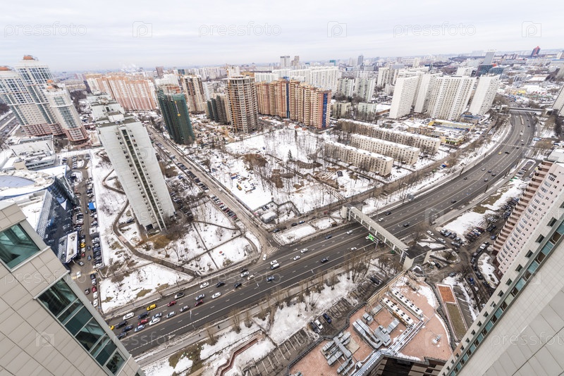 Зима в районе новых зданий