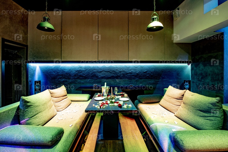 Кафе с лазерным освещением и эффектами дыма