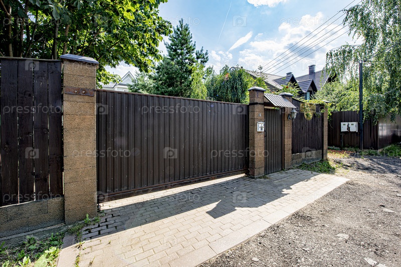 Сдвижные ворота на территории загородного дома