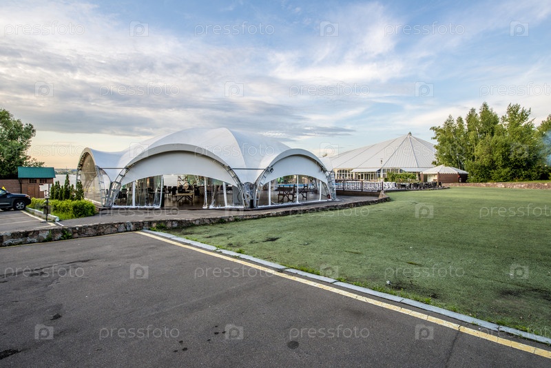 Загородный клуб, палатки летних кафе в саду