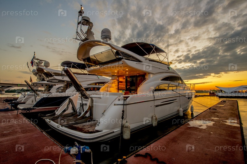 Прогулочная яхта на водохранилище причал
