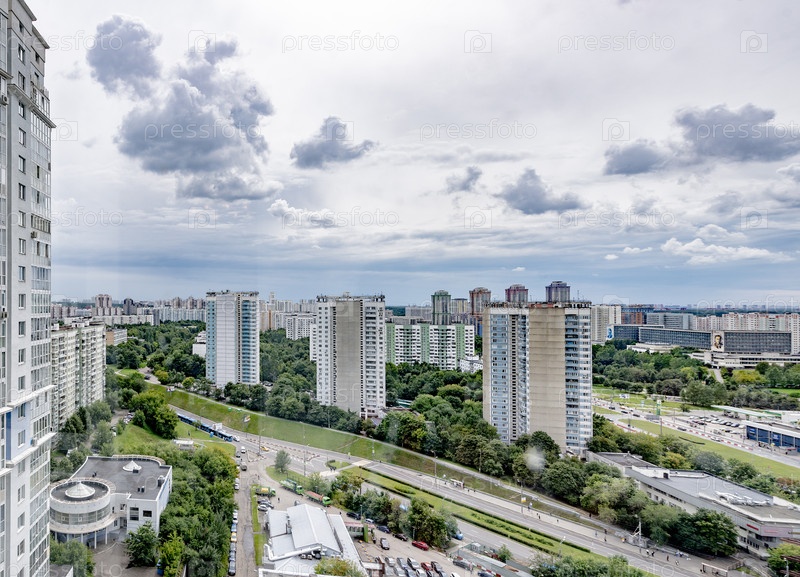 Высокие жилые дома в спальной зоне на окраине Москвы