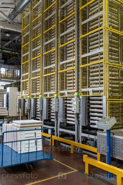 Современный автоматизированный завод по производству холодильников, оснащенный промышленной системой хранения с изолированными панелями внутри