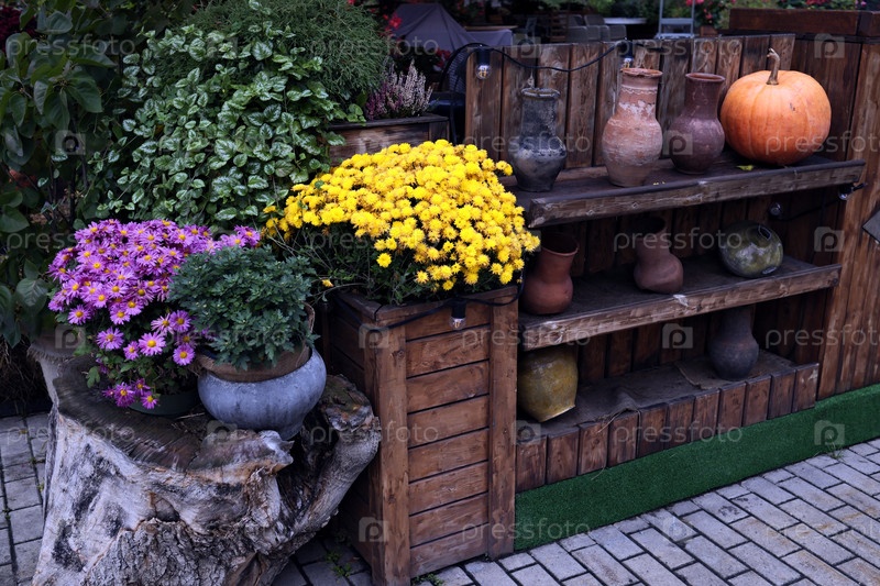 Букеты диких цветов и глиняные горшки на полках.Россия Воронеж 12 октября 2025
