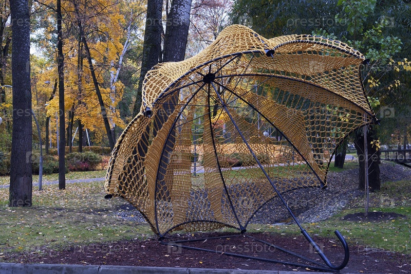 Декоративный зонтик в травяном парке.Осень.Центральный парк.Россия Воронеж 12 октября 2025