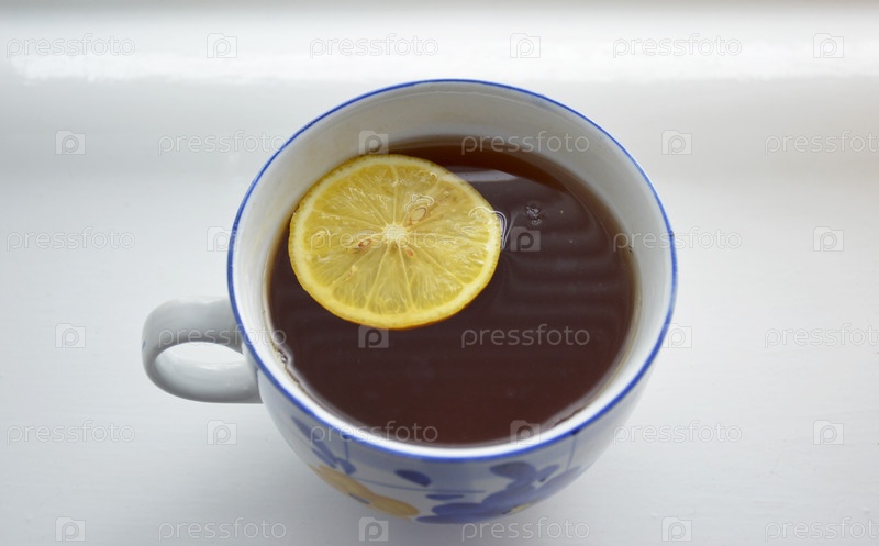 Чашка лимонного чая на белом фоне.Наслаждайтесь ароматным напитком с витаминами