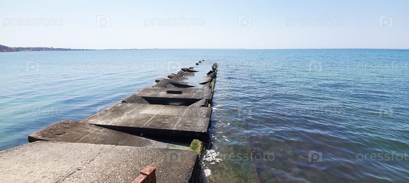 Старый, ветхий бетонный пирс простирается в море