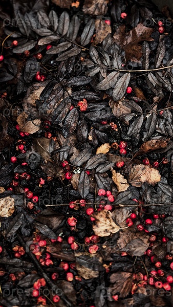 Осенний след - влажные листья и ягоды рована