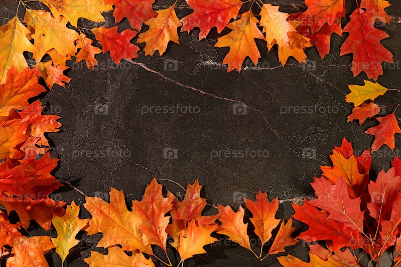 Рамка с кленовыми листьями на мраморном фоне, осенняя абстрактная композиция, концепции Дня благодарения, сезонный фон, поздравительные открытки или приглашения, экранированный баннер, осенние поздравления
