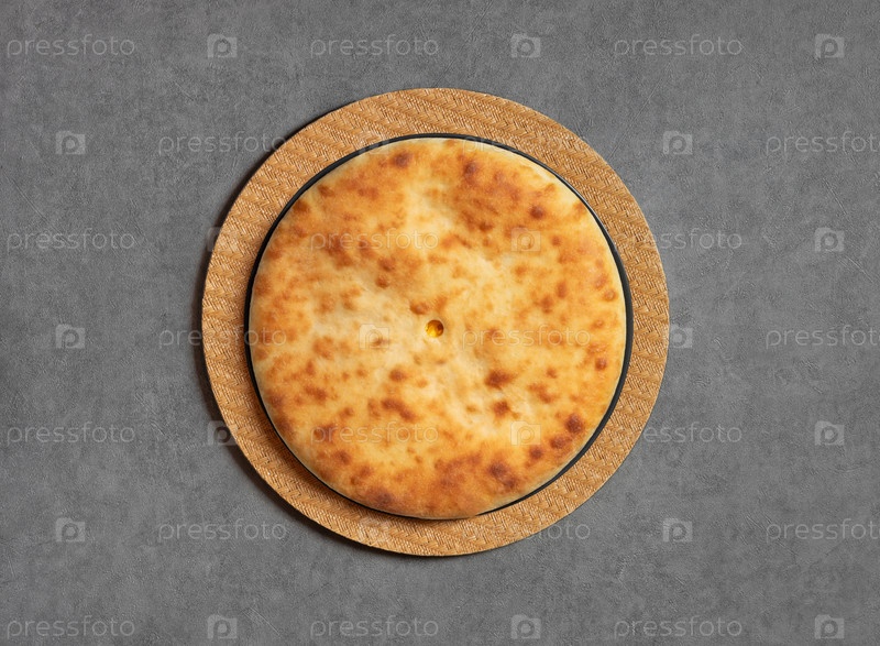 Осетинский торт на деревянной салфетке тыквенный пирог на сером фоне вид сверху, плоско лежащий