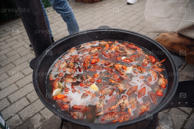 Речные крабы кипятят в котле