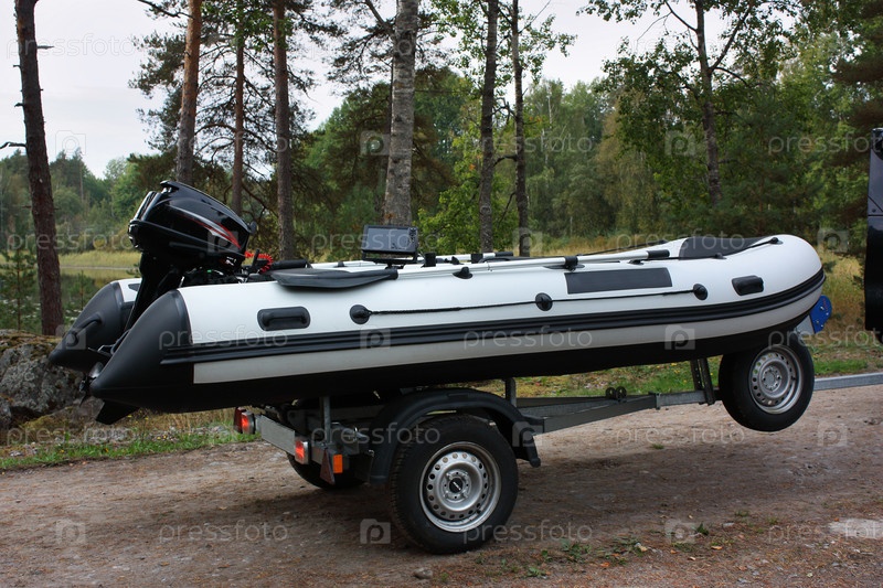 Резиновая лодка с мотором на трейлере