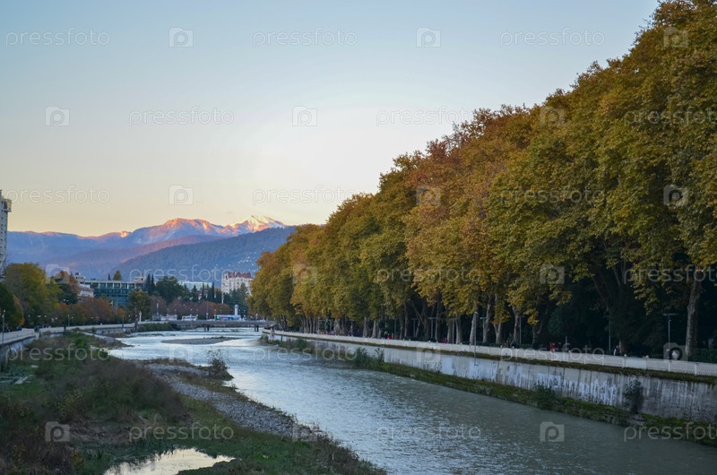 Краснодарский край, Сочи. набережная реки Сочи. вид на горы