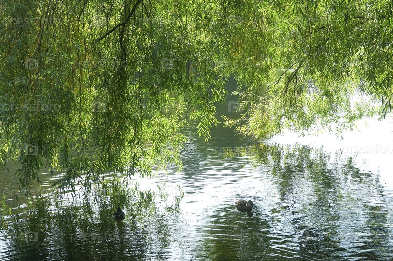 Ветви плачущей ивы сгибаются над водой