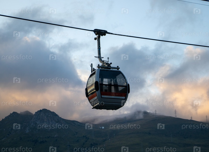 Кабина канатной дороги на фоне неба и гор