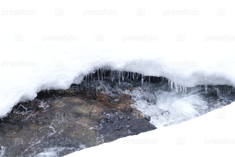 Горный ручей в снегу