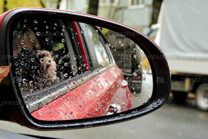 Капли дождя на боковом зеркале машины
