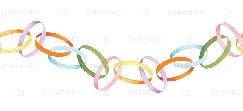 Бесшовная граница бумажной гирлянды. Иллюстрация акварели. Для ткани, обоев, упаковочной бумаги, поздравительных открыток, дизайна, декора и иллюстрации