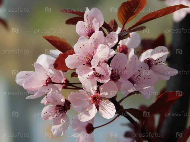 Цветущие персики или цветы бобов (Prunus cerasifera), также известные как брызги сливы