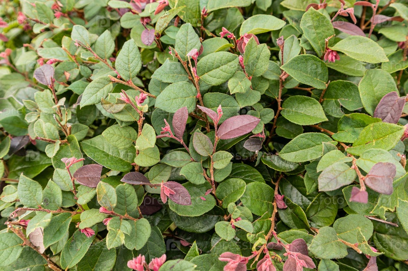 Красивые яркие листья декоративного куста loropetalum chinense. естественные яркие декоративные растения для украшения городских улиц, парков, площадей
