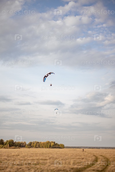 Полет на параплане над полем