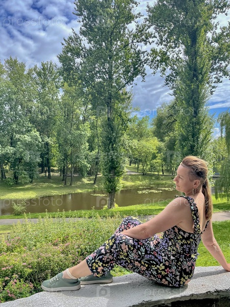 Женщина позирует перед Витебском, Беларусь