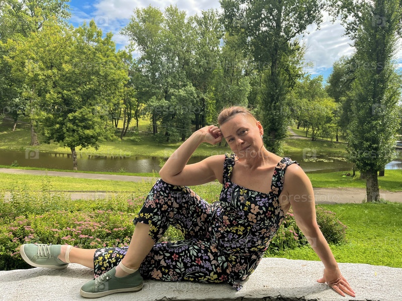 Женщина позирует перед городом Витебск