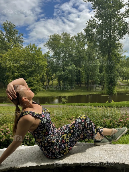 Женщина позирует перед городом Витебск