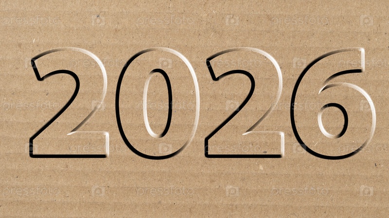 Год 2026 года и вырезанный в кусок картона