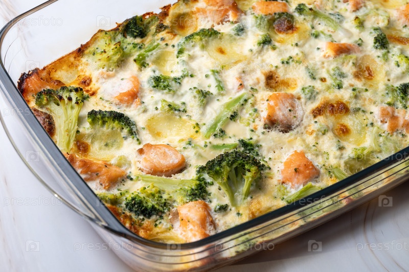 Домашняя кастрюля из лосося и брокколи с сыром моцареллы