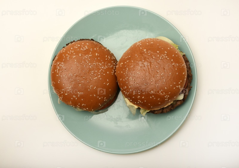 гамбургер с мясом и овощами. фаст-фуд. гамбургер на тарелке