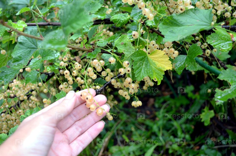 Белые ягоды смородины на кусте