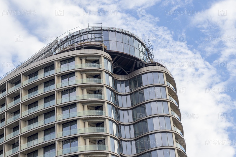 Современное здание, находящееся в стадии строительства, почти завершено