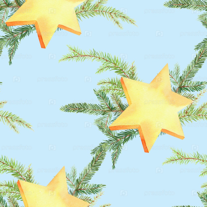 Бесшовный рисунок звезд акварели и рождественских бангсов на синем фоне. для ткани, обоев, упаковочной бумаги, поздравительных открыток, дизайна, декора и иллюстрации