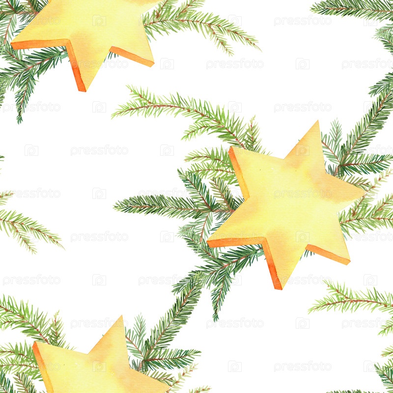 Бесшовный рисунок звезд акварели и рождественских пакетов для ткани, обоев, упаковочной бумаги, поздравительных открыток, дизайна, декора и иллюстрации