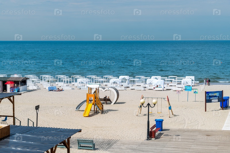 Курортное место отдыха с чистым голубым морем и развлечениями
