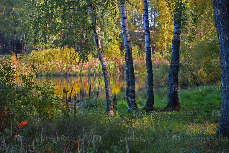 Прекрасный вид в лесу у озера