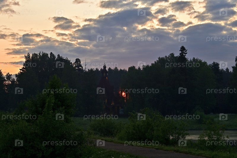 Рассвет рано утром в лесу на берегу озера