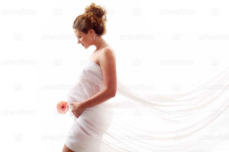 Беременная женщина на белом фоне
