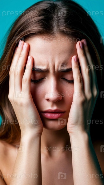 Расстроенная молодая женщина держит голову своими руками в попытке облегчить боль