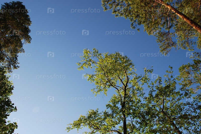 Голубое небо над вершинами деревьев