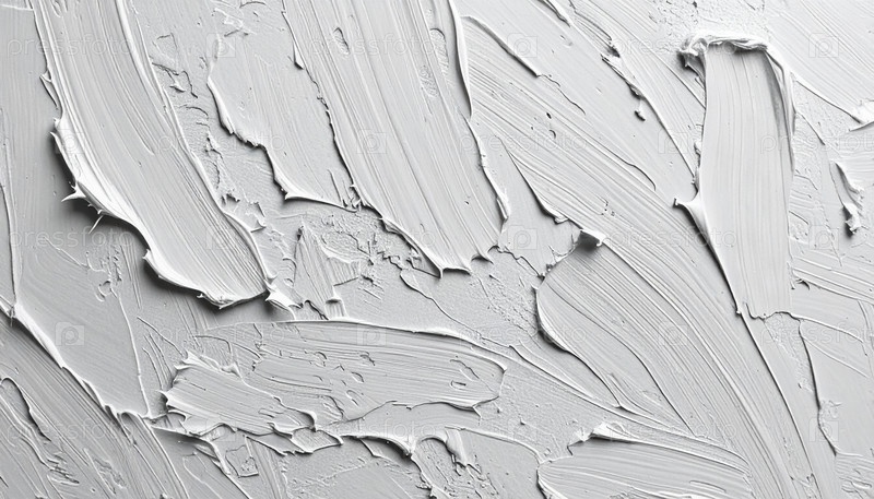 Близкий план текстурированных мазков белой краски, символизирующих минимализм, простоту дизайна, сырое художественное выражение и основу творческих возможностей на чистом холсте